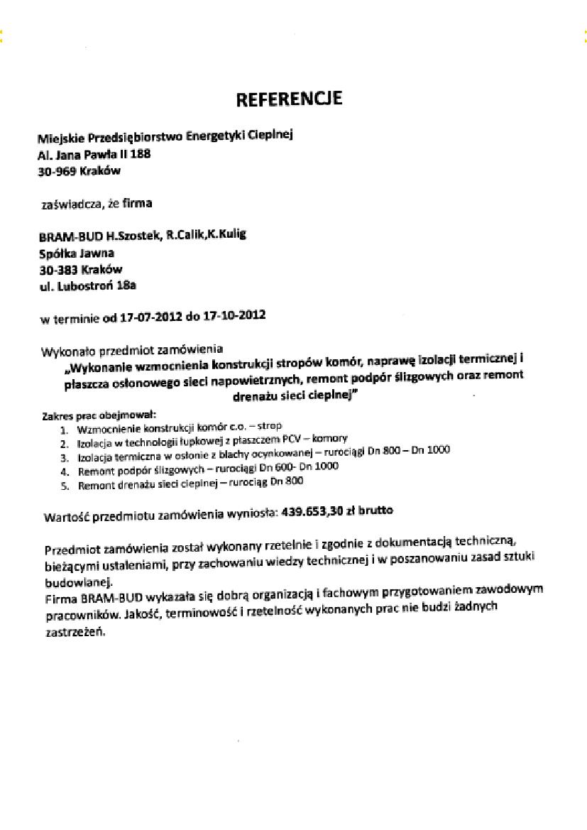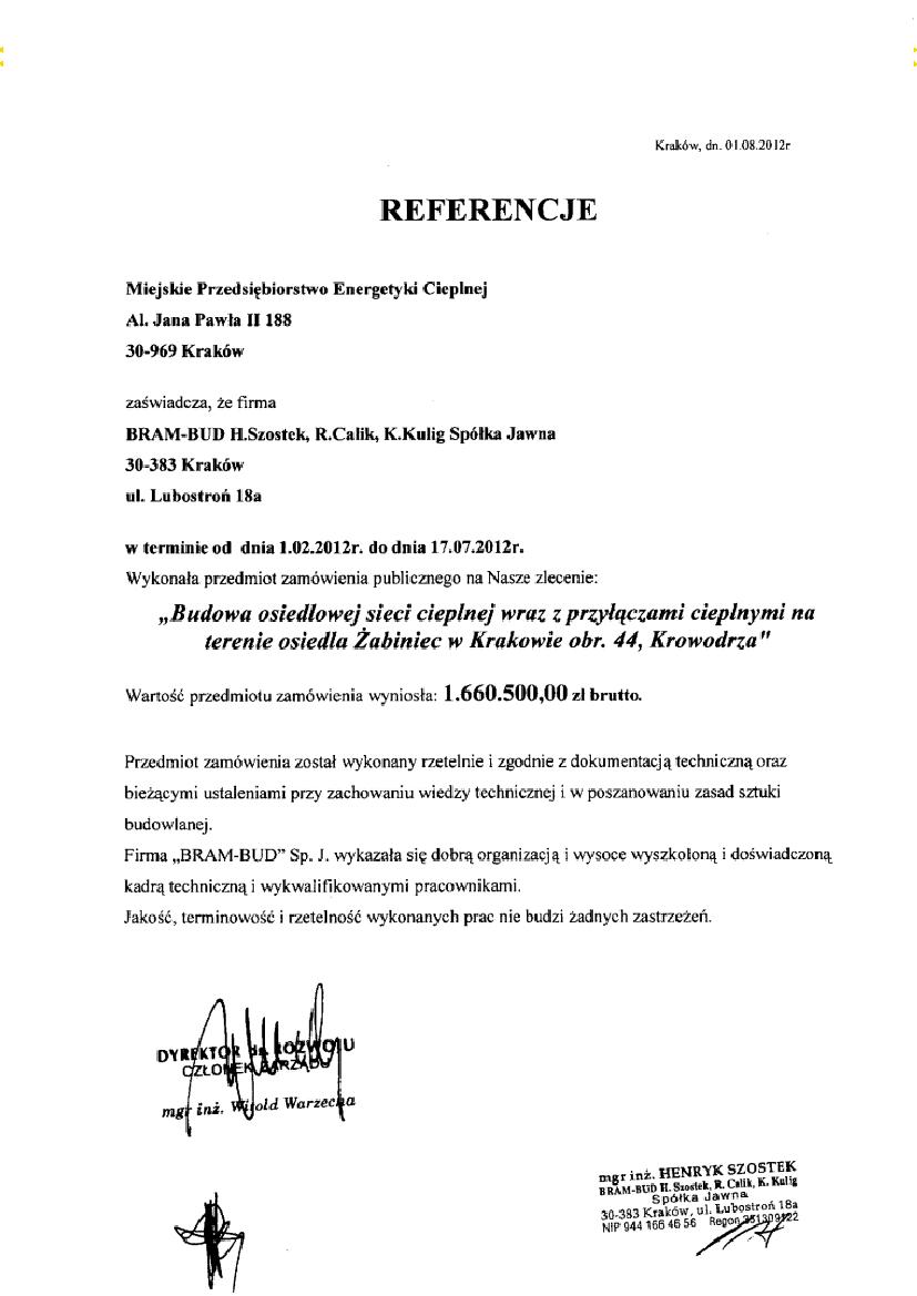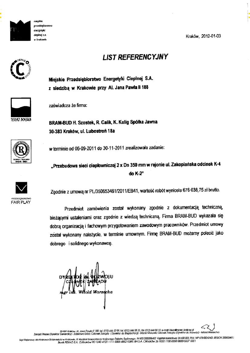 - 2012 Miejskie Przedsiębiorstwo Energetyki Cieplnej S.A. z siedzibą w Krakowie przy Al. Jana Pawła II